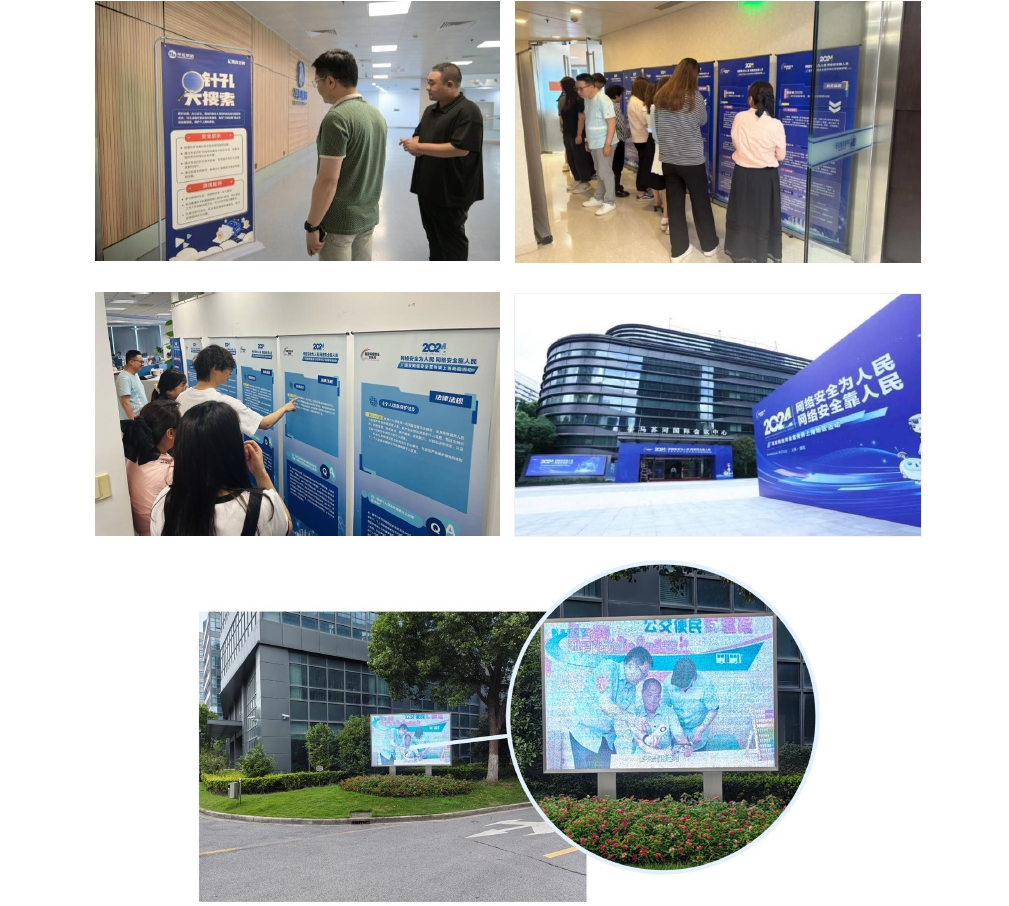 依托云工会平台开展以网络安全宣传为主题的线上学习活动,围绕《网络安全法》《数据安全法》等5个主题开展知识竞答,激发员工学习网络安全知识的积极性,检验提升员工的网络安全防护水平。线下设置网络安全宣传展板、海报、LED屏幕、宣传手册,邀请专家讲课、组织培训、参观展览,设计模拟场景查找针孔探头,提升员工信息安全意识,筑牢个人信息安全之堤,保护企业信息安全。
