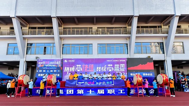 此次运动会开幕仪式环节特邀各单位职工代表一起参与,8位鼓手一同擂响大鼓,代表万名华虹人展现向着年度目标冲刺的决心。
