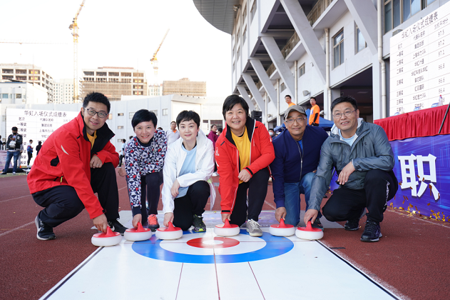 竞赛讲求团队默契配合和策略。一片冰“芯”项目是为迎接2022年北京冬奥会特别设置的旱地冰壶比赛,广受大家的欢迎。领导嘉宾们现场组成“神秘嘉宾A队”、“神秘嘉宾B队”,加入到13支队伍的淘汰PK赛中,增加了比赛的悬念。经过多轮PK,“神秘嘉宾A队”超强发挥,以关键一球逆转,力压对手,成功夺冠。上海华力1队、集团总部队、华虹宏力2队分获项目第二、三、四名。