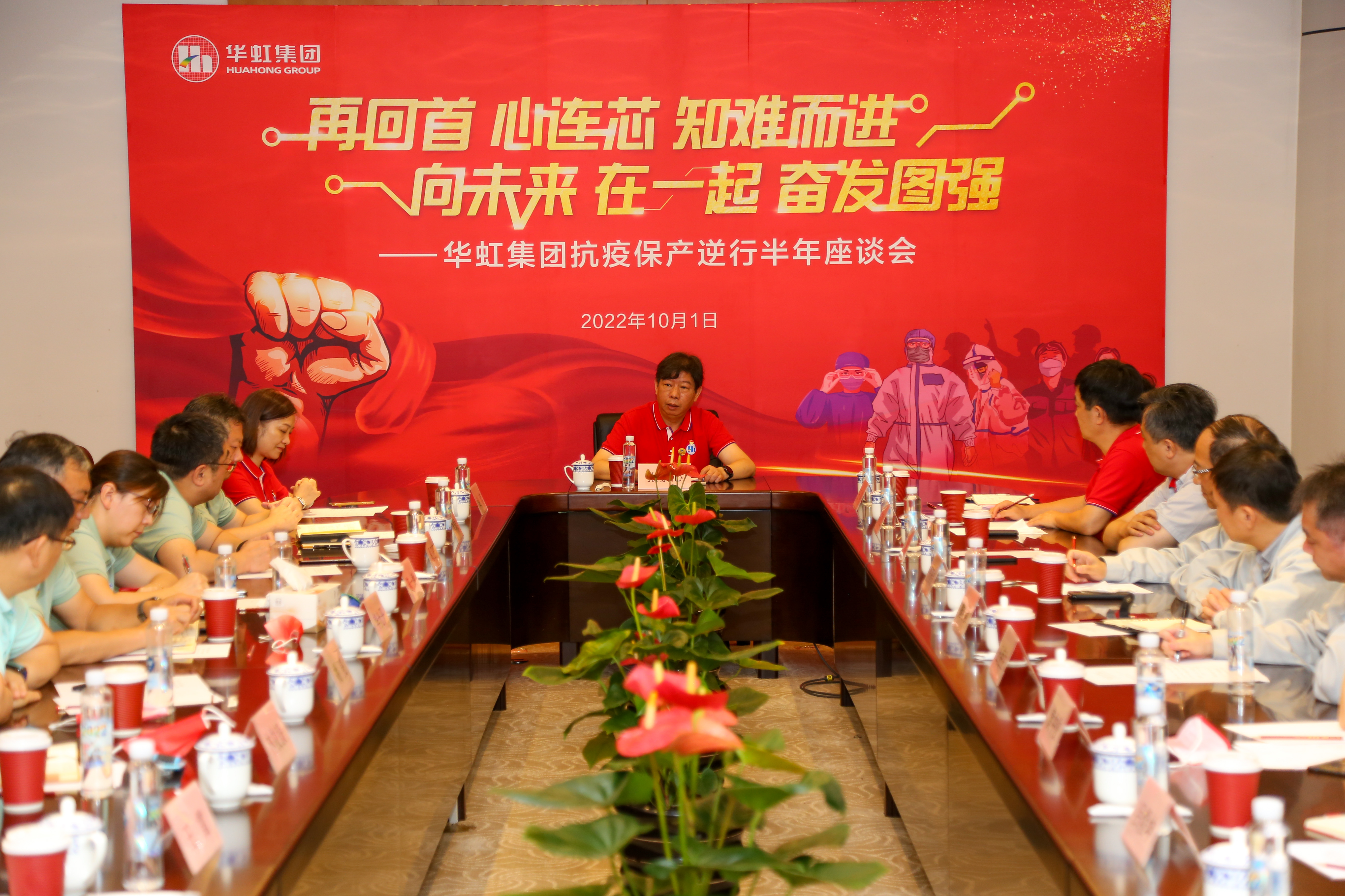 两大制造平台抗疫保产逆行半年座谈会。上午,在欧洲杯压球网站(中国)有限公司发源地——华虹一厂召开“再回首,心连芯,知难而进;向未来,在一起,奋发图强”两大制造平台抗疫保产逆行半年座谈会。集团领导及两大制造平台的党政工团负责人、工厂厂长齐聚一堂,深情回顾,凝聚共识,激情展望踔厉未来,进行了充分交流。